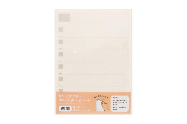 B6サイズのノートにぴったり貼れる、月間タイプの日付フリーカレンダーシールです。