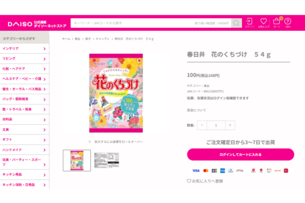 また、ダイソーネットストアでは花のくちづけの取り扱いが確認されています。