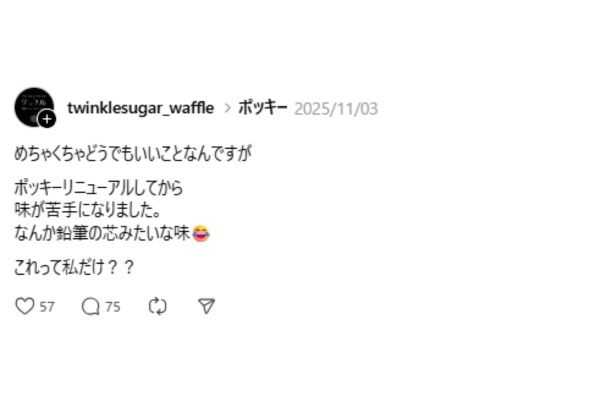 リニューアル後のポッキーについては、「味も香りも以前と違う気がする」という指摘も寄せられています。