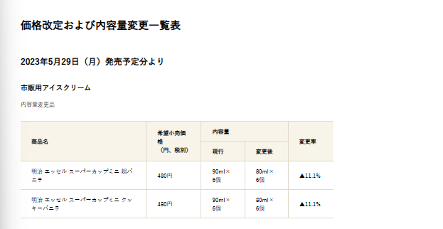 価格は上がっていきましたが、定番の超バニラ(200ml)は容量据え置きで、ミニは減量になるようです。